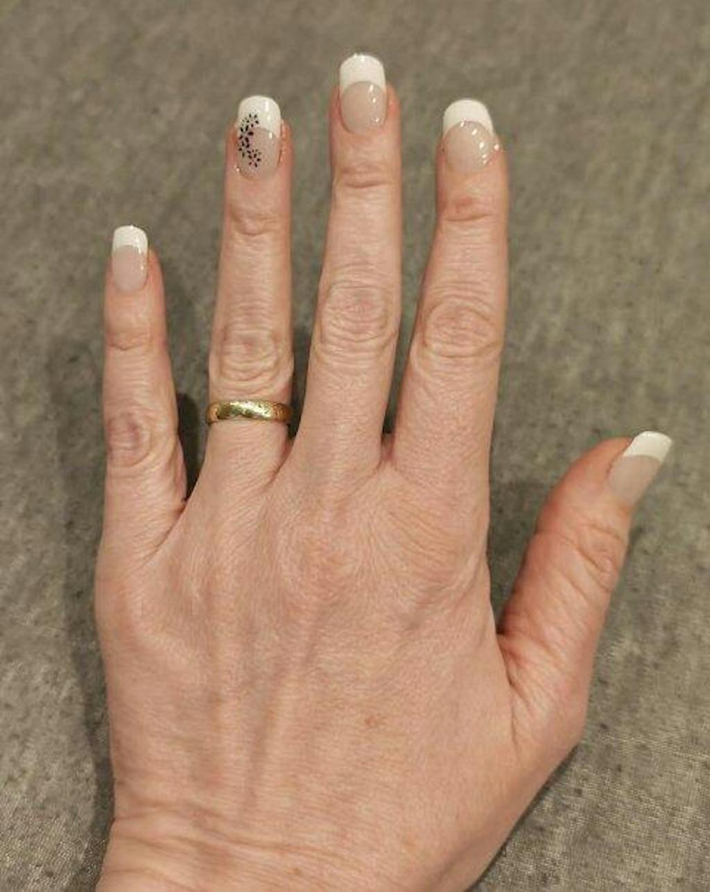 Okraj prirodzeného nechtu môžete predĺžiť maximálne o 0,5 – 1 mm , ale je dôležité okraje nálepky zalepiť UV vrchným lakom.